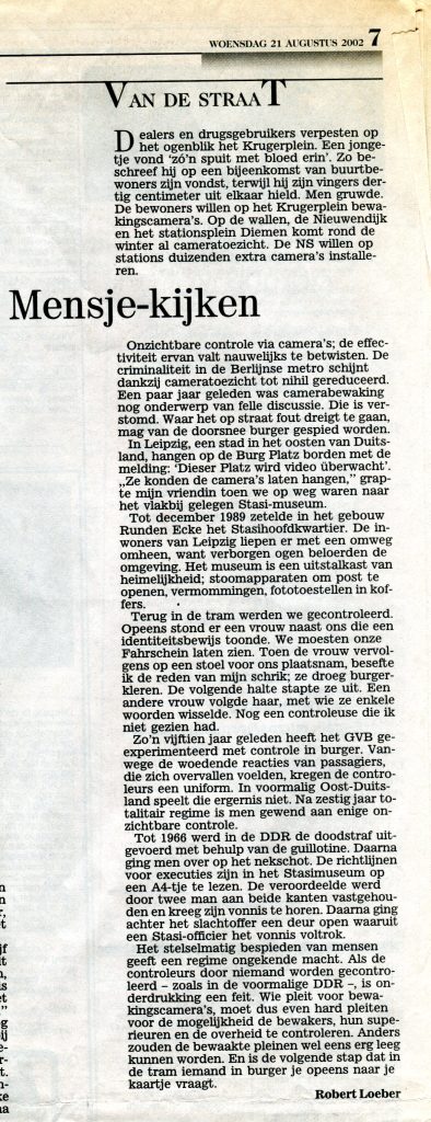 Column in Amsterdams Stadsblad 21-08-2002